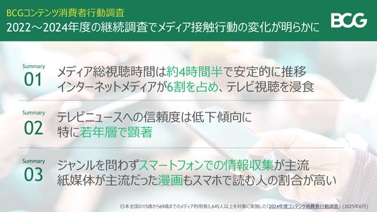 経営コンサルティングファームのボストン コンサルティング グループ(以下、BCG)は、日本全国の15歳から69歳までのメディア利用者3,645人以上を対象に実施した「