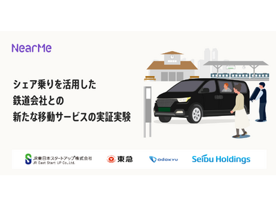 移動の課題に取り組むソーシャルデザインカンパニーの株式会社NearMe(本社:東京都中央区、代表取締役社長:高原幸一郎、以下:ニアミー)は、東日本旅客鉄道株式会社のグループ会社でベンチャーへの出資・協業を推進するCVCのJR東日本スタートアップ株式会社、東急株式会社、小田急電鉄株式会社、株式会社西武ホールディングスで構成される鉄道横断型社会実装コンソーシアム「JTOS(ジェイトス)」の第5弾として“シェア乗り”を活用した新たな移動サービスの実証運行が決定しました。