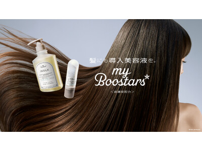 髪の構造に着目し、スキンケア発想で髪の内部から美しさを育むヘアケアブランド『myBoostars(マイブースターズ)』は、「ケラチン」「コラーゲン」「ヘマチン」の 3 シリーズに続き、サラサラと艶やかな仕上がりと、ダメージケアを同時に叶える「インシルク」シリーズを新発売します。