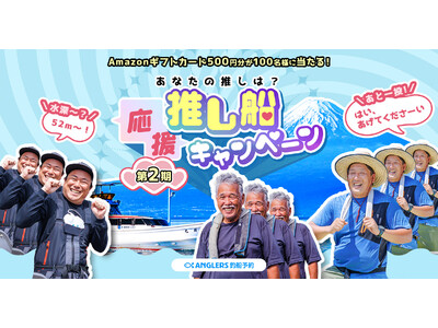 株式会社アングラーズ(本社:東京都町田市、代表取締役:若槻嘉亮)は、釣船予約サービス「アングラーズ釣船予約」にて、“推しの釣り船”に応援コメントを募集する「推し船応援キャンペーン」第2弾を、2025年6月17日(火)から7月15日(火)まで開催します。また、参加者には抽選で100名にAmazonギフトカード(500円分)をプレゼントします。