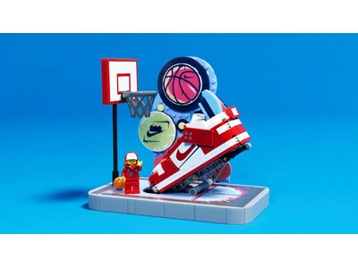 「レゴ(R) Nike Dunk Trickshot」は、アイコニックなNike Dunkのレッドカラーのスニーカーを中心に、カラフルな背景やダンクシーンを組み立てて遊べるセットです。2種類の表情が楽しめる特別なミニフィギュア付きで、近所のプレイグラウンドを自分だけのステージに変えることができます。ダイナミックなダンクシーンを再現することも、スニーカーを外して自分だけのゲームシーンを表現することも可能です。