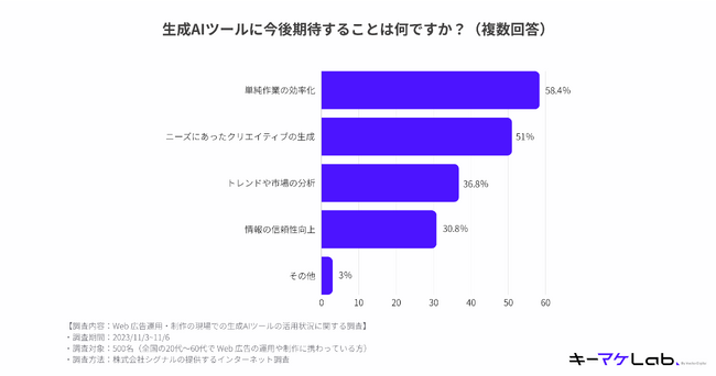 3.全体の58.4%が生成AIツールに「単純作業の効率化」を期待。