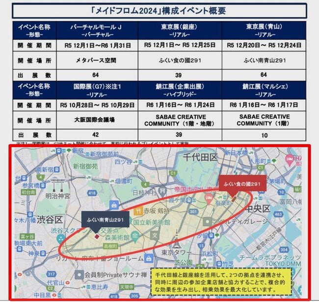 いよいよ2023年12月1日から、テーマを「拡張と浮揚」、コンセプトを「ローカルラグジュアリー」と掲げ、MONOZUKURI EXPO『MADE FROM 2024』が開催されます。12月には、G7大阪・堺貿易大臣会合で注目を浴びた『Virtual MallJ(バーチャルモールジェイ)』とふくいアンテナショップ291がコラボし、銀座・青山で『東京展』を開催致します。このイベントにより、日本のものづくりが新たなローカルラグジュアリーのステージへ飛躍します。