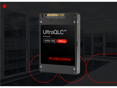 サンディスクは本日、ストレージ容量、パフォーマンス、電力効率を格段に向上させる大容量256TB¹NVMe(TM)エンタープライズSSDを披露しました。これはサンディスクの新しいエンタープライズ向けUltraQLC(TM)プラットフォームにより実現されました。大容量を実現するUltraQLC(TM)プラットフォームは、NAND アーキテクチャにおける重要な成果を示しており、BiCS8 QLC CBA NAND、カスタムコントローラー、そして高度なシステム最適化を組みあわせて構築されています。