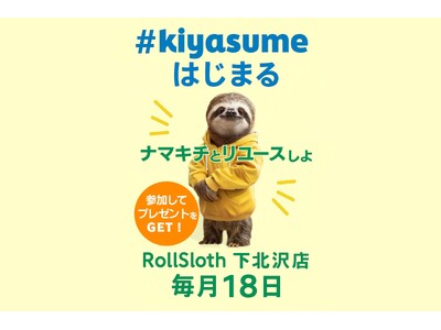 このイベントでは、なまけものグッズや古着の物々交換会を実施し、参加者にはリラクゼーションドリンク「kiyasume」1本とRollSlothスタンプをプレゼント。店内はkiyasumeカラーで装飾され、なまけものの世界観を楽しみながら、サステナブルなコミュニティ交流の場が楽しめます。