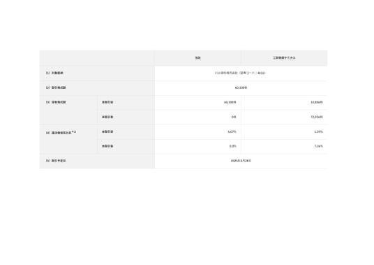 *1 発行済株式総数に対する割合*2 議決権総数に対する割合は、川上塗料株式会社の第110期有価証券報告書に記載された、2024年11月30日時点の議決権総数9,895個を基準に算出