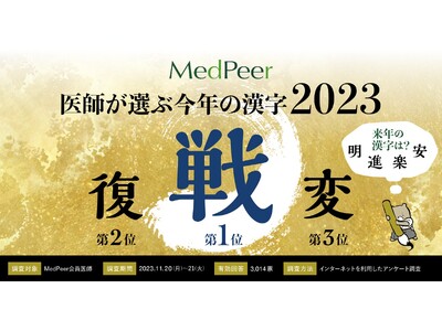 メドピア株式会社(東京都中央区、代表取締役社長 CEO:石見 陽)は、国内医師の約半数16万人が登録する医師専用コミュニティサイト「MedPeer(medpeer.jp)」の医師会員3,014名に2023年の医学界を表す一文字「医師が選ぶ今年の漢字」と2024年がどのようになることを期待するかの漢字一文字「医師が選ぶ来年の漢字」を募集、発表いたします。