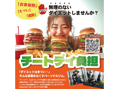 「食事制限+チートデイ」 の黄金バランスを体験しませんか?無理な制限を続けるのではなく、しっかりと楽しみながら理想の体型を目指す新しいダイエットの形を、一緒に実践しましょう!