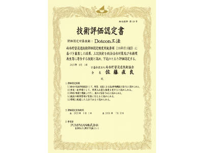 この認定は、Dotcon工法が都市型水害の抑制や地下水涵養、環境負荷低減といった多面的な観点から、
