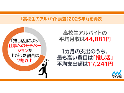 株式会社マイナビ(本社:東京都千代田区、代表取締役 社長執行役員:土屋芳明)は、15~18歳の高校生を対象とした「高校生アルバイト調査(2025年)」を発表しました。