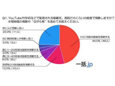 - 「ほぼ毎日1回視聴する」は15.0%(15人)で、日常的に動画を利用する層をさらに押し上げています。