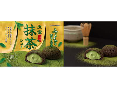 昨年リニューアルした“玉露抹茶シュー”は、ザクザク食感のビターなショコラクッキーシュー生地の中に、宇治抹茶と玉露を使用した、口どけなめらかな玉露入り抹茶クリームを詰め込みました。ふくよかな香りと甘みが口の中に広がる抹茶の奥深い味わいが特長で、昨年多い日には1日で約53,000個を販売した実績を持つ商品です。