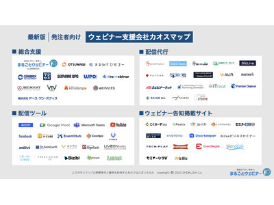 ショクサイ株式会社は、2025年4月16日より【最新版】発注者向け ウェビナー支援業界カオスマップを公開しました。ウェビナー支援会社の選定を容易にし、最適なパートナー探しに活用できます。