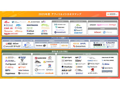 デジタルマーケティング支援事業を展開する株式会社シード(本社:東京都千代田区飯田橋 代表取締役:池田智之、以下 シード)は、独自の調査により、アフィリエイト広告に関連するサービス・ツールをまとめた「2025年度 アフィリエイト広告業界カオスマップ」を公開いたしました。