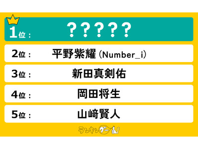 1位と2位、3位と4位はそれぞれ僅差で順位が決定しました。1位はアイドルとしても俳優としても圧倒的な存在感を放つSnow Manの目黒蓮さん。2位は性格の愛らしさでも人気を集めているNumber_iの平野紫耀さん。3位は色気のある力強い眼差しが魅力的な新田真剣佑さん。4位は透明感溢れる王子様のようなオーラを放つ岡田将生さん。そして、5位は隙のないビジュアルにときめく、山崎賢人さんがランクインしました!