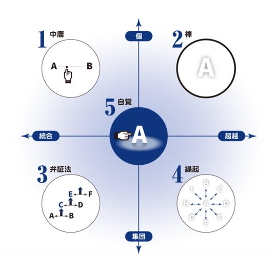 人事哲学 実践講座 5教科_概念図(中庸・禅・弁証法・縁起・自覚)