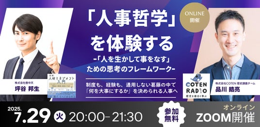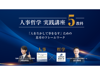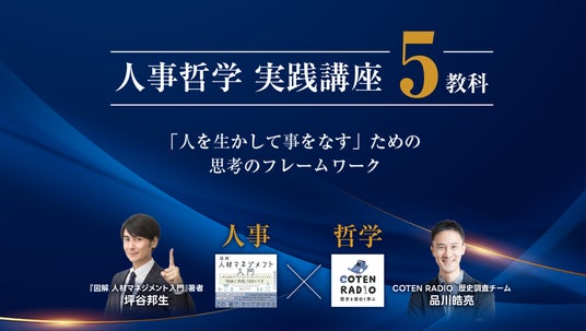『図解 人材人材マネジメント入門』をはじめ100のツボシリーズの著者である坪谷 邦生とCOTENラジオ歴史調査チームで哲学に精通している品川 皓亮の2名の専門家が講師を務めます。