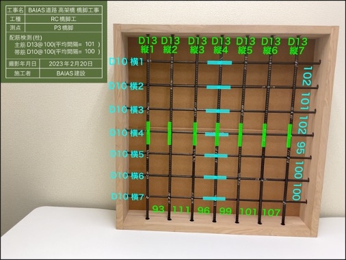 本機能の追加により、BAIASによる計測結果は自動的に電子小黒板に埋め込まれるため、従来の方法((1)コンベックスで計測、(2)計測結果を確認し平均間隔を計算、(3)手書きで黒板に書き込む)が不要となり、検査プロセスにおける一層の省力化が期待されます。