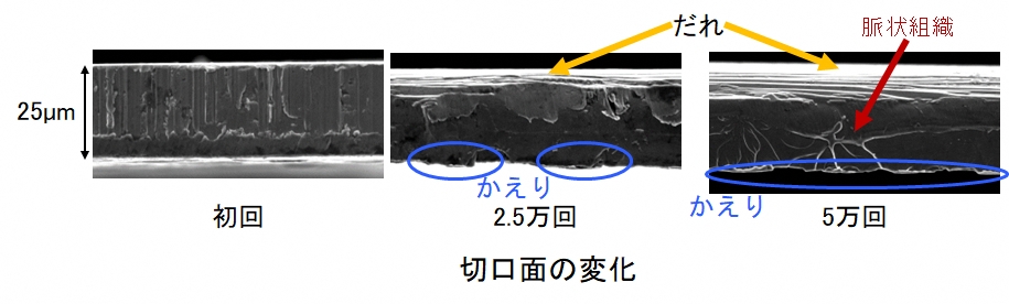 アモルファス箔の打ち抜きにおける金型クリアランスと切り口面性状との関係から、クリアランスを2~3µmに超高精度化することが有効であることが分かりました。