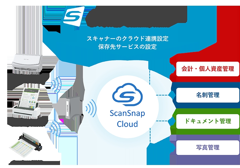 また、ScanSnap Cloudの設定機能を統合。お客様のScanSnapアカウントでログインし、お使いのクラウドサービスを指定すれば、ScanSnapから直接、設定したクラウドサービスへ保存いただけます。