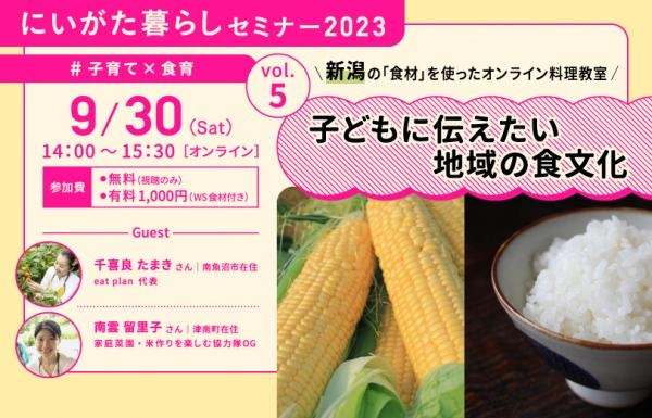 9月30日(土曜日)にいがた暮らしセミナー「新潟の『食材』を使ったオンライン料理教室~子どもに伝えたい地域の食文化~」をオンラインで開催します