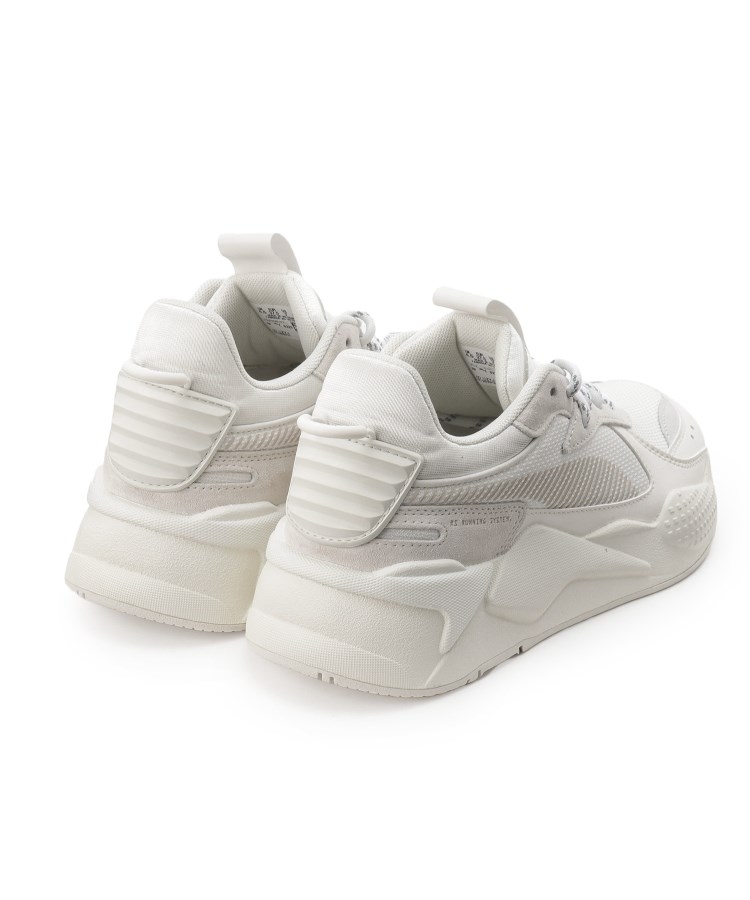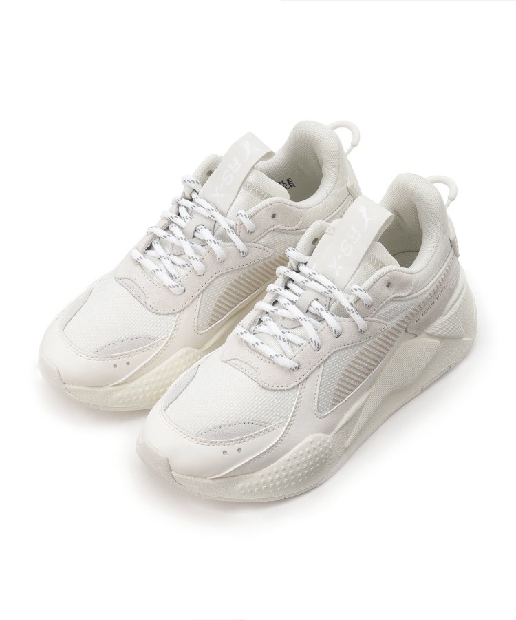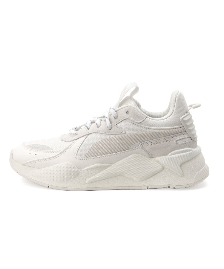 RS-Xは、未来をイメージして過去のデザインを活かしたスタイルで、オリジナルの大胆なシルエットを更に立体的なルックス、そして耐久性のあるものへ変更し、アッパーの異素材の組み合わせが特徴です。