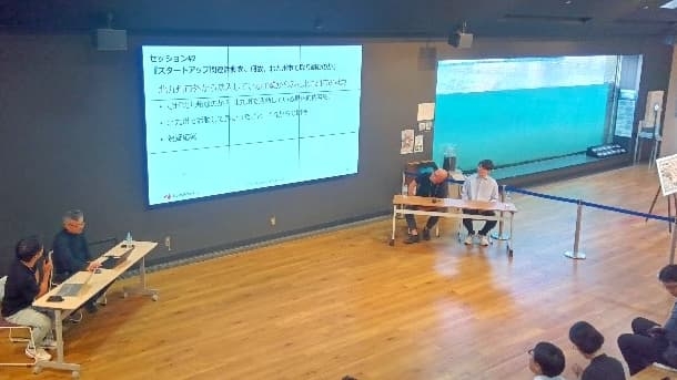 トークセッション2では、COMPASS小倉 福岡様をモデレータに、9Capital合同会社 竹山様、株式会社タンソーマンGX 福元様、北九州市産業経済局 森永様、ユビキタスAI 長谷川、そしてトークセッション1から引き続きIVS 島川様にもご参加いただき、北九州市である理由、なぜ北九州市でビジネスに取り組むのかなどについて議論されました。