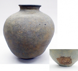 【中世にリユースがあった!】 本器は、粘土紐輪積みタタキ成形をした後、器面を磨き上げた精製品の壺です。 南北朝時代の珠洲窯で本器が焼成され当初の用途で使用された後、中世の内に当時有していた中国の青白磁の破片をあてがい、布と漆を用いて修復し通常の壺の用途で用いたと推測されます。
