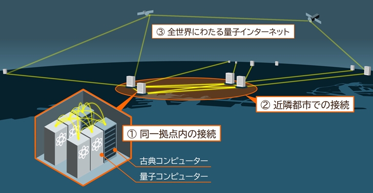 量子技術は、科学技術の進化の基盤である計算、通信、計測などの情報処理を大きく変革する技術として期待されています。特に計算分野においては、近い将来、有用な量子コンピューターが登場し、従来の古典コンピューターと共存して商業利用が始まる可能性が示唆されています。しかし、有用な量子コンピューターが現れたとしても、装置一台では処理能力に限りがあり、装置の不具合やメンテナンスによりサービスに支障が生じうることから、処理能力の拡張や柔軟な運用管理を可能にする複数装置の接続の実現が求められています。また、量子情報の伝達には微弱な光が用いられますが、装置間の距離が長くなるほど光が失われる確率が高まるため、遠距離間では量子中継と呼ばれる特殊な中継技術が必要といった課題があります。