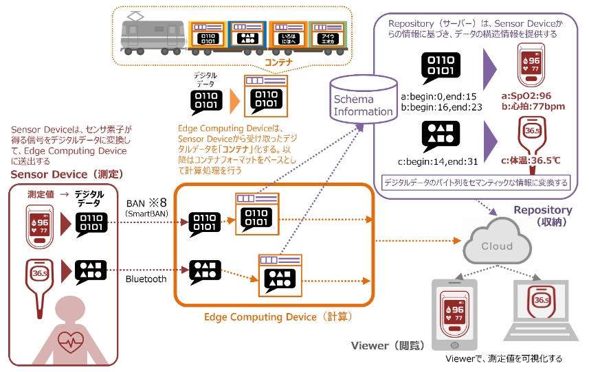 (図1)ウェアラブルセンサ信号コンテナフォーマット技術 概念図