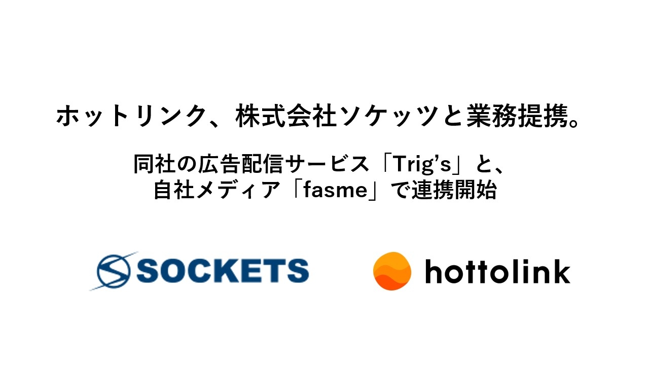 ホットリンク、株式会社ソケッツと業務提携。同社の広告配信サービス「Trig’s」と、自社メディア「fasme」で連携開始