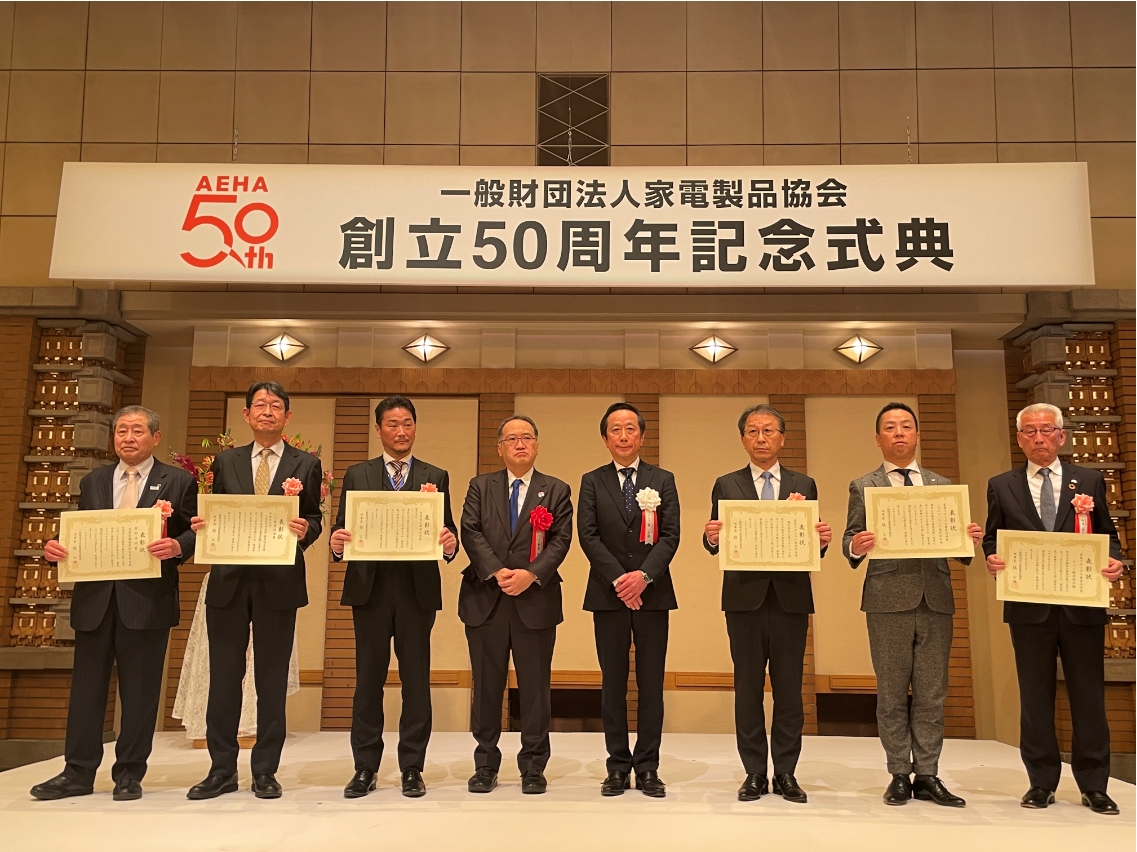 家電製品協会の創立50周年で開催された本式典は、家電メーカー、関係省庁、日々家電リサイクルの促進に貢献している諸団体関係者など約450人が招待されました。式典の中では記念表彰として、特に家電製品協会の取り組みに大きく貢献した企業6社・団体が記念表彰を受けました。