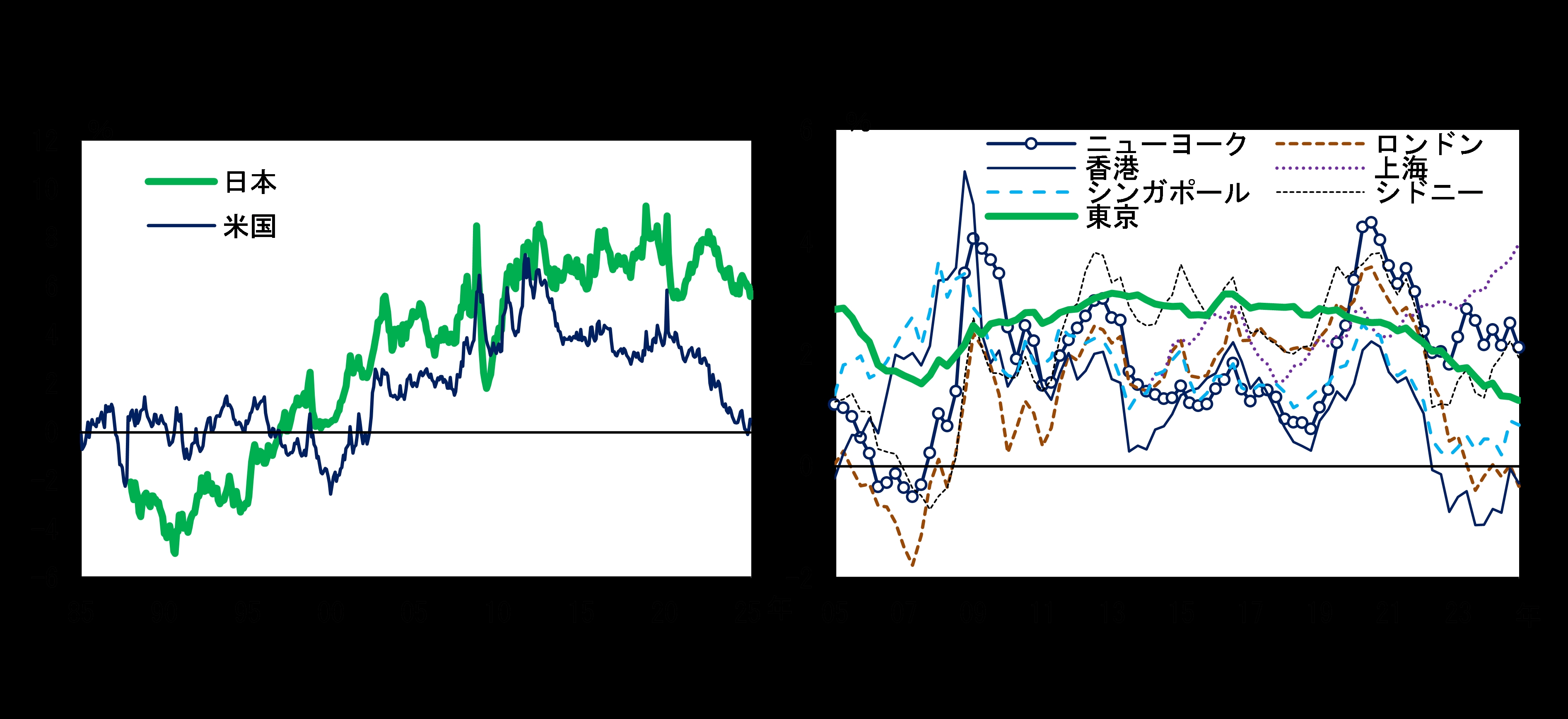 不動産価格は、大都市圏を中心に上昇している(図表I-3)。景気が緩やかに回復するもとで物件需要が堅調であることや、資材価格の高騰や人手不足の影響などによる供給要因が、物件価格の押し上げを牽引していると考えられる。加えて、資産保有・転売目的の大規模土地取引や投資用マンション取引の活発化、海外投資家による商業用不動産の取得の持ち直しもみられており、これらの要因も価格上昇に寄与している可能性がある。こうしたもとで、商業用不動産価格は賃料対比でみて上昇を続けており、不動産投資にかかる期待利回りやリスクプレミアムも低下している(前掲図表I-2右図)。金融機関の不動産関連エクスポージャーが趨勢的に増加していることも踏まえると、不動産価格の動向には引き続き注意が必要である。