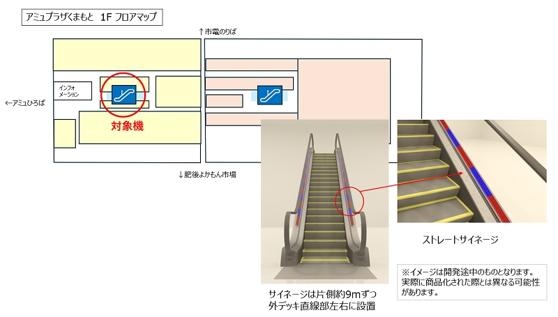 東芝エレベータ株式会社(代表取締役社長:鈴木正広 本社:神奈川県川崎市)は、JR熊本駅の複合商業施設「アミュプラザくまもと」のエスカレーターにサイネージ(以下エスカレーターサイネージ)を設置し、広告宣伝効果を検証する実証実験を2025年6月11日~2025年7月21日までの約1か月の期間実施いたします。