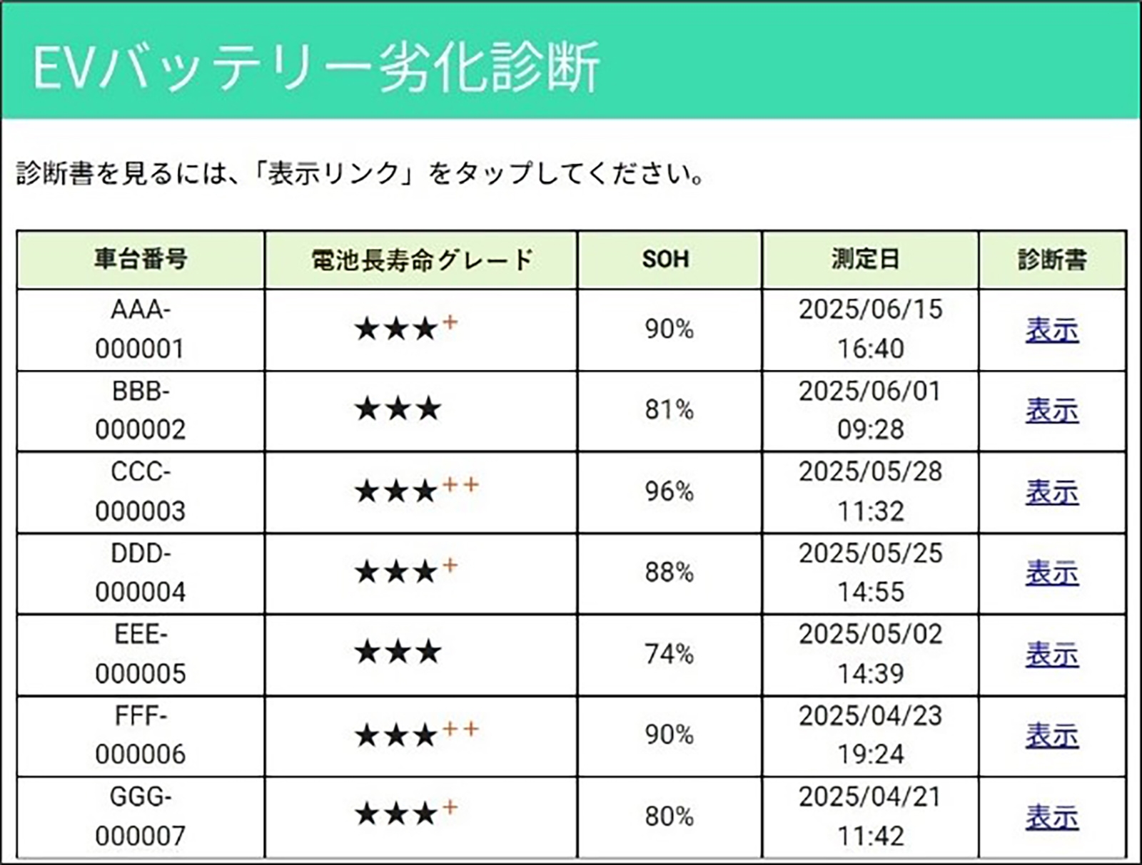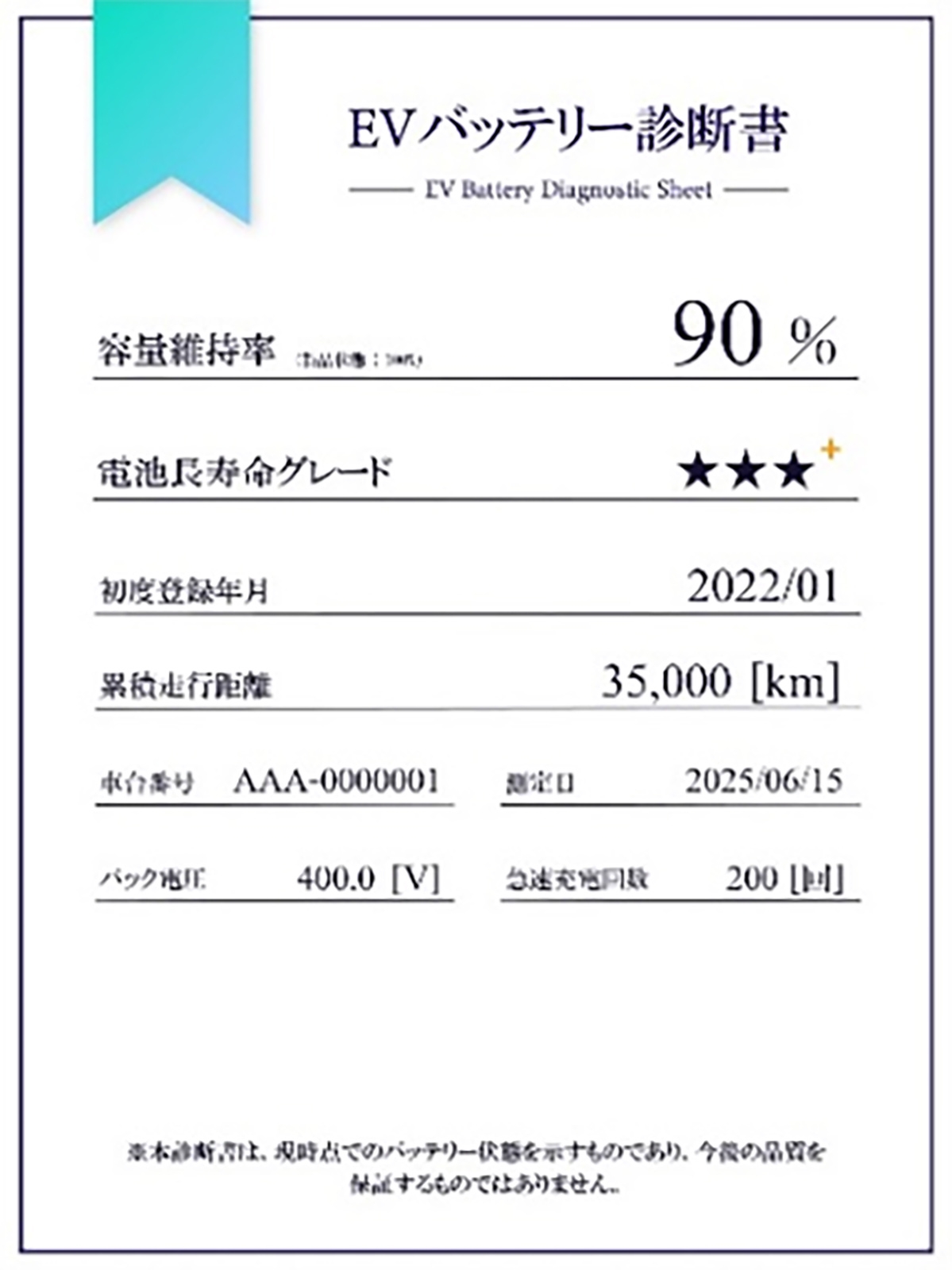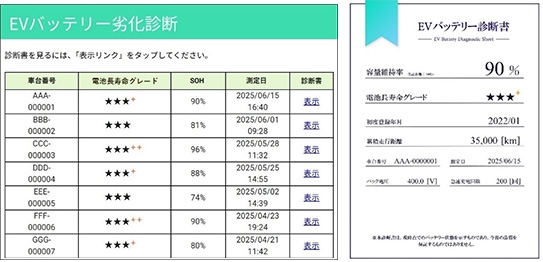 EVolity:EVバッテリー劣化診断システムによる診断および診断書の発行