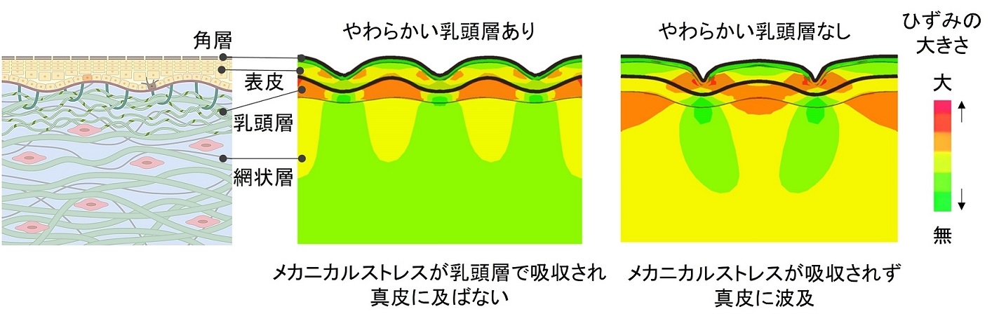 Download Small Image[192KB] Download Large Image[214KB] やわらかい乳頭層にはメカニカルストレスから真皮を守る機能があった