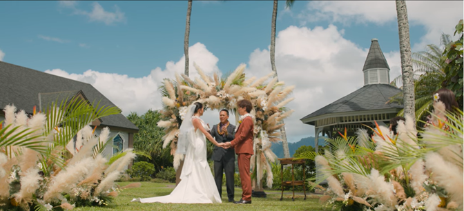 池田美優さんと大倉士門さんは、当社プロデュースにより、2024年3月にハワイの「ザ・プライベート・ガーデン アロハ・ケ・アクア」にて挙式をされました。