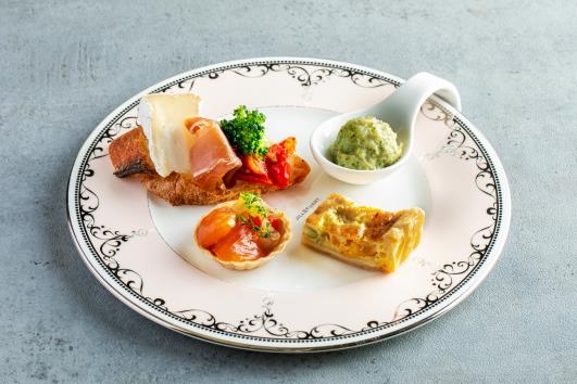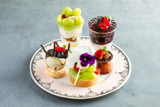 とシャインマスカットの相性が際立つ「シャインマスカットのミニパフェ仕立て」や、涼やかな口当たりが心地よい「ピオーネと白ワインのムース」など、五感をくすぐる5 種の旬スイーツをご用意。さらに、フレンチシェフ自慢のジューシーなローストビーフをリッチな味わいで楽しめるほか、野菜のキッシュやスモークサーモンのタルトレットなど本格セイボリーも合わせてご提供いたします。また、ベーカーシェフが丁寧に焼き上げる香ばしいスコーンは、ホテルメイドのクオリティーで食べ応えもある一品です。他では味わえないベイ・ビューならではの贅沢なラインナップが揃います。20 種類以上の茶葉を取り揃えたティーブッフェや、スパークリングワインのフリーフローとご一緒にお楽しみください。