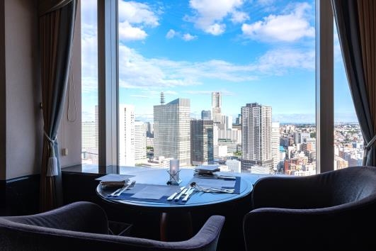 ホテル最上階から横浜港を一望する最高のロケーションでお楽しみいただけるアフタヌーンティーセットは、宝石のように輝くシャインマスカットの爽やかな甘みと皮ごと味わえる上品な食感、さらに濃厚な果汁と華やかな香りが魅力のピオーネを贅沢に使用したスイーツをご堪能いただけます。マンダリンを使ったガナッシュ