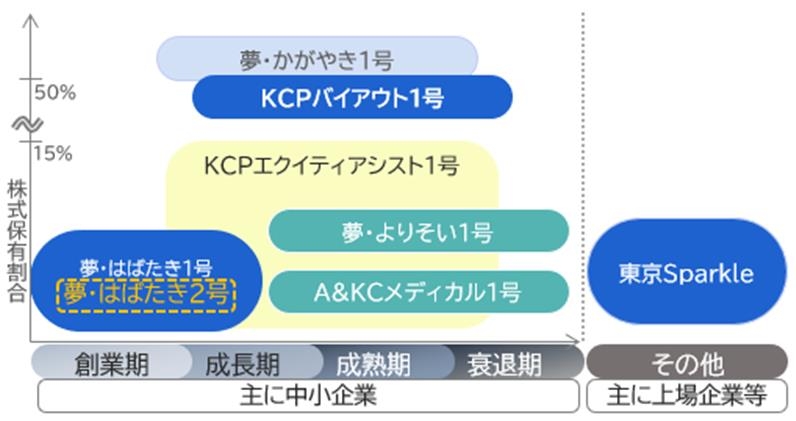 きらぼしグループでは、従来型の融資取引に留まらないさまざまな手法による幅広いソリューションを提供しております。その一環として、当社子会社のきらぼしキャピタル株式会社(代表取締役社長 田中 俊和、以下「きらぼしキャピタル」といいます。)および株式会社きらぼし銀行(頭取 渡邊 壽信、以下「きらぼし銀行」といいます。)は「夢・はばたき 2 号ファンド」(以下、「本ファンド」といいます。)を組成し、将来性豊かな成長企業に対する投資を通じて経営をサポートしております。当社グループの営業エリアには成長性の高い企業が集積しており、本ファンドでは、当社グループとのお取引の有無に関わらず、事業性や成長性等に応じた投資判断を行っております。