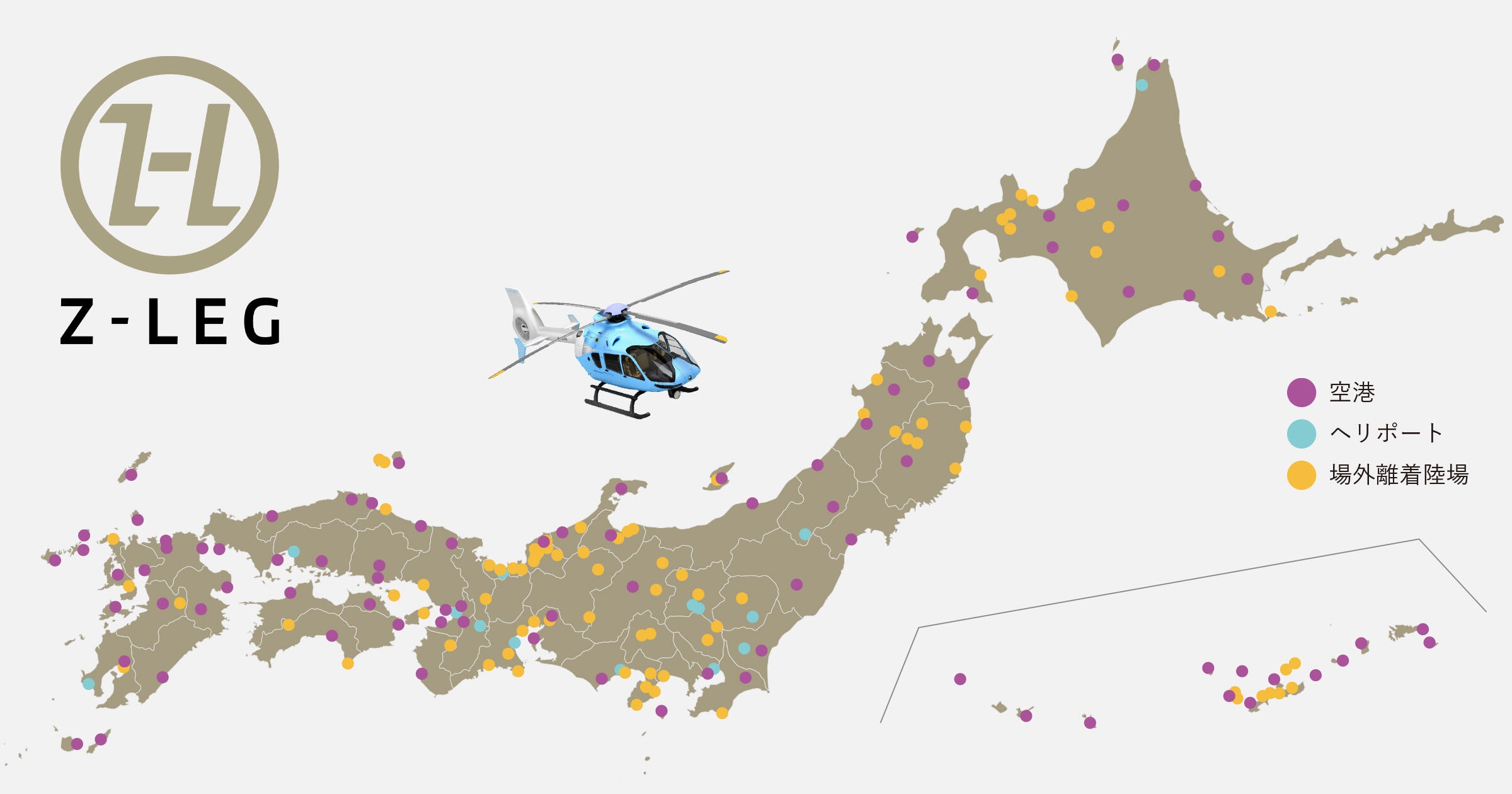 ヘリコプター手配サービス「Z-Leg(TM)」、利用可能な場外離着陸場が100ヶ所を突破