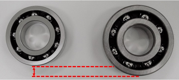 「HA-C軸受(左)」と従来品(右)の寸法比較