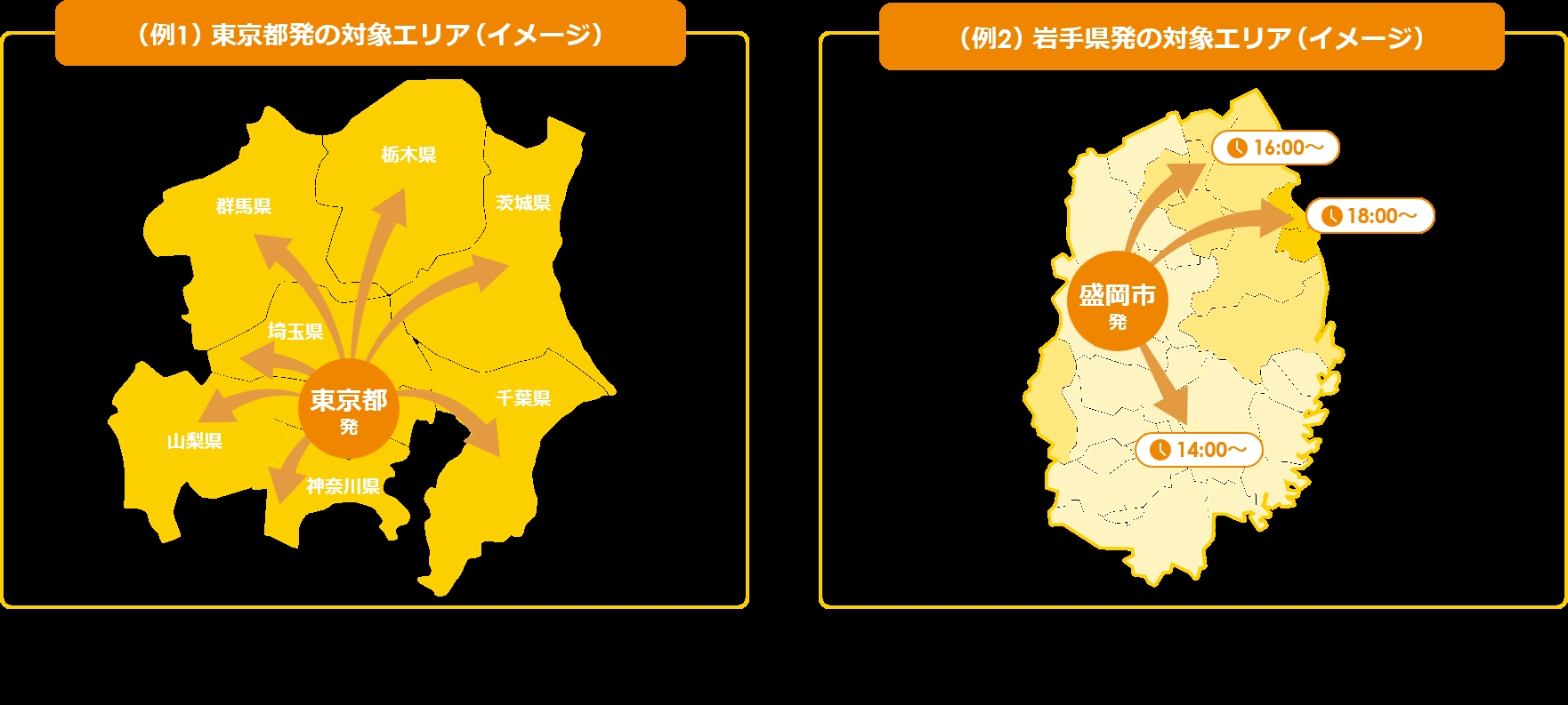 ・法人のお客さま:農水産品など鮮度を保ったまま早くお届けしたいもの、カタログやサンプル品、急ぎの納品物など ・個人のお客さま:仕送り品やギフト、早くお届けしたいお荷物など |