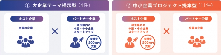 本プログラムは、以下2つのコースで、埼玉県内企業と全国の企業による共創プロジェクトを組成し、事業化に向けた支援を行います。