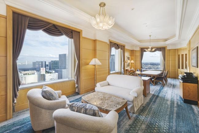 高層階に位置する広々としたホテル最上級のエレガントなスイートルーム。邸宅に暮らすように過ごせるダイニングと静かにくつろげるベッドルームで、横浜の景色を眺めながらゆったりとお過ごしいただけます。