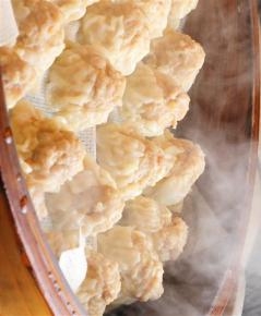 「やきとり屋とりどーる」最大の特徴は、なんといっても本格炭火焼鳥。 「吹田店」も他店舗同様、ご入店いただくと最初に目に飛び込むのは、職人が炭火で丁寧に焼き上げる焼台です。香ばしい香りと、ジュウッと焼き上がる音が、食欲をかき立てます。さらに、店内中央には名物の『肉汁焼売』専用の蒸し場を設置。思わず目を惹く大きなせいろを配置し、どのお席からも蒸し上げる様子がご覧いただけます。ふたを開けた瞬間、湯気とともに立ちのぼる香りが店内を包み込み、食べる前からワクワクをお届けします。また、季節メニューで人気の『炭火炙り焼き』が吹田店限定でグランドメニューに登場!鶏肉を高火力の炭火で豪快に焼き上げ、肉汁をぎゅっと閉じ込めた、炭火の香ばしさと旨みがあふれる一品です。