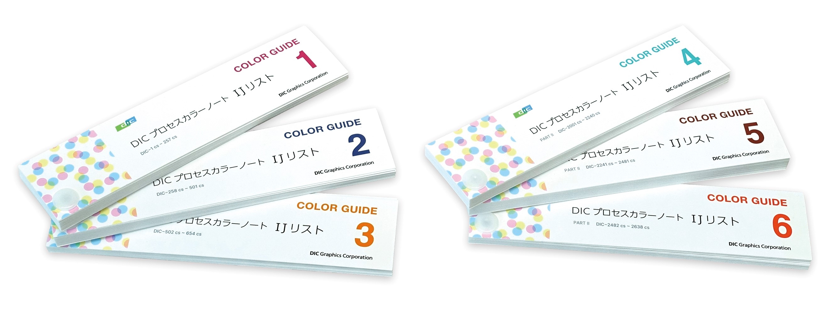 DICカラーガイドシリーズは、プロセス印刷*1では再現が難しい色味を特色印刷*2によって表現する色見本帳で、出版物や広告、各種デザインの色指定に広く活用されています。「プロセスカラーノート」は、色見本帳「DICカラーガイド(R)」および「DICカラーガイド(R)PARTⅡ」に収録されている全1,289色をCMYK値*3によるプロセス印刷での再現例として示したノートタイプの色見本帳で、プロセス印刷の表現域を把握するための重要なツールとして親しまれてきました。