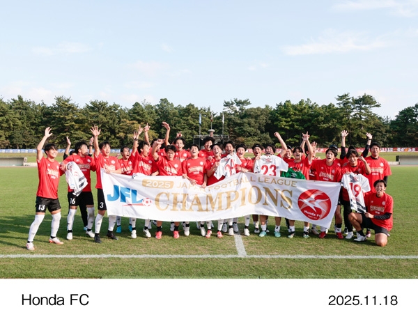 11月15日(土)・16日(日)に第27回日本フットボールリーグ(JFL)第29節が開催され、本田技研工業株式会社フットボールクラブ(以下、Honda FC)が、2年ぶり通算11回目の優勝を果たしました。これによりチームが持つJFL史上最多優勝回数の記録を更新しました。