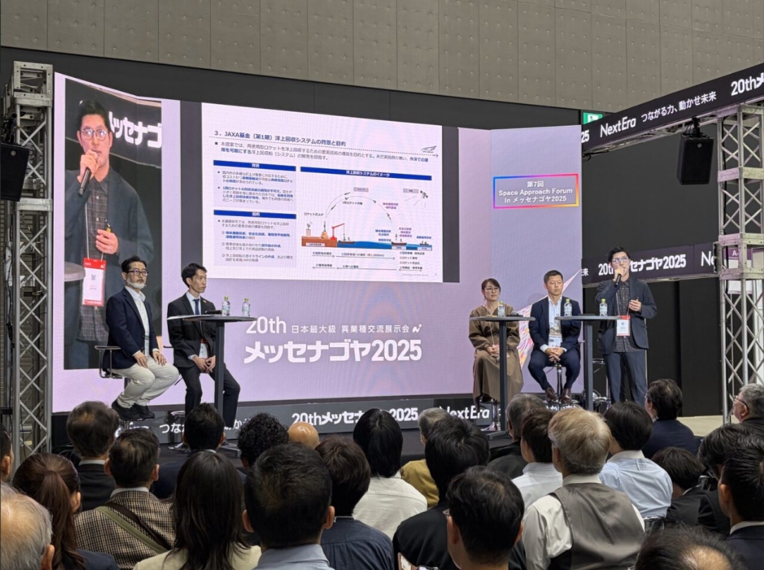 Space Approachは、ロケットや衛星をはじめとする宇宙産業に関わる出展企業の最新技術や取り組みを紹介する目的で、メッセナゴヤ内の特別展示として開催されました。2006年に始まったメッセナゴヤは、業種を問わず幅広い分野・地域から参加した出展企業と来場者の取引拡大や情報発信、異業種交流を促進する日本最大級のビジネス展示会です。2005年に開催された愛知万博の理念である「環境」「科学技術」「国際交流」を翌年から継承したイベントで、今年は約5万人が来場しました。