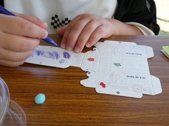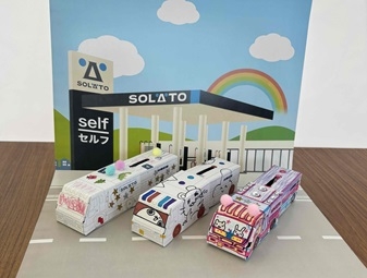 小さなお子様を中心に多くの方にご参加いただき、ペーパークラフトに絵を描いたり色を塗ったりして、世界にひとつだけのオリジナルの作品づくりを楽しんでいただきました。今回のワークショップは、小さなお子様にエネルギーに関する仕事をもっと身近に感じてもらうことを目的に企画したもので、参加した子どもたちからは「この車見たことある」や「この顔(SOLATOのシンボルマーク)知ってる」といった声も聞かれました。